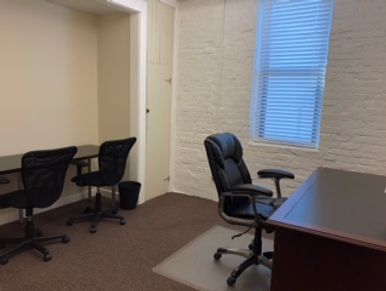 This 12x12 office space is move-in ready and a window bringing in natural light. Available to you are several desk and chair options or furnish your own office.